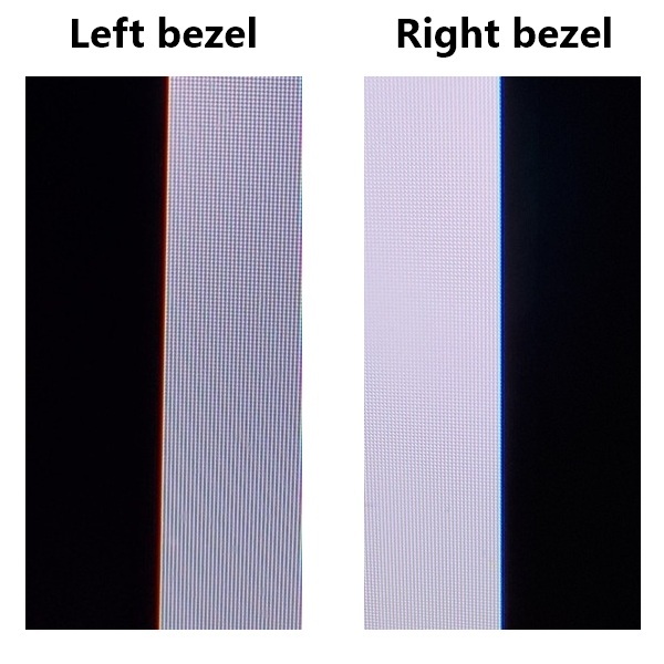 Caution: the images in this section showing fringing issues also greatly exaggerate them and are not representative of what you will see by eye when using the monitor normally. Please read the accompanying text, which provides appropriate context.